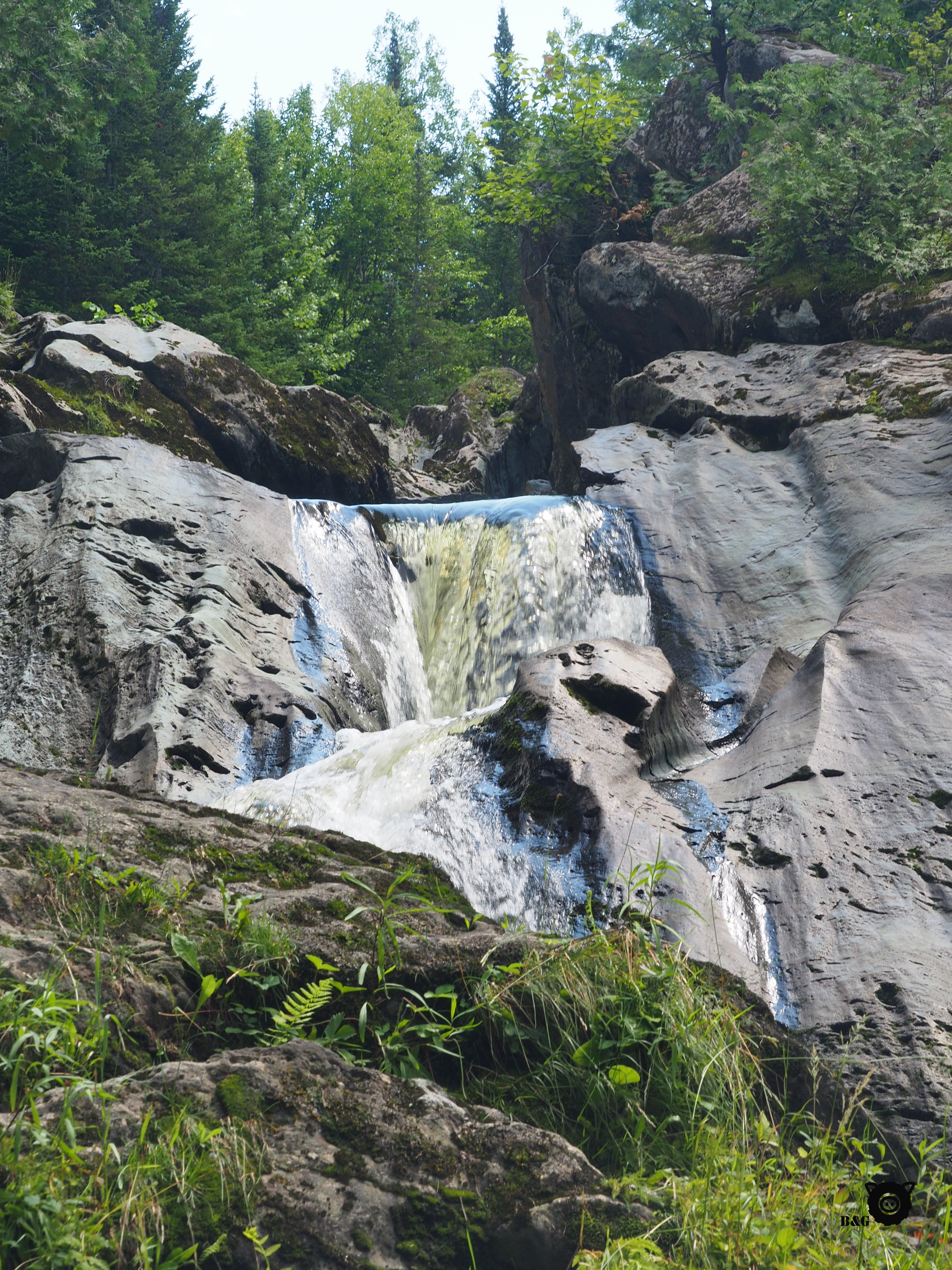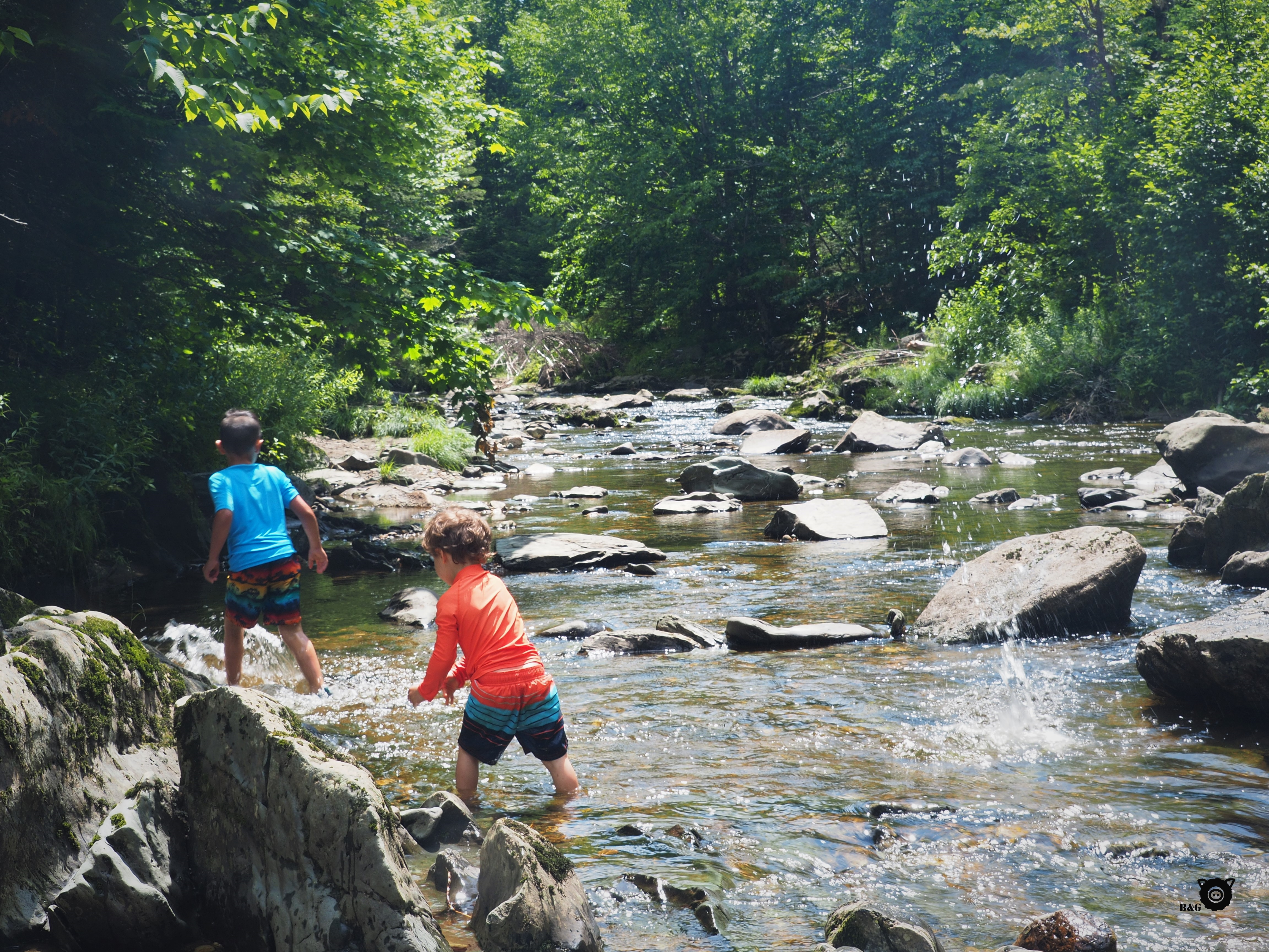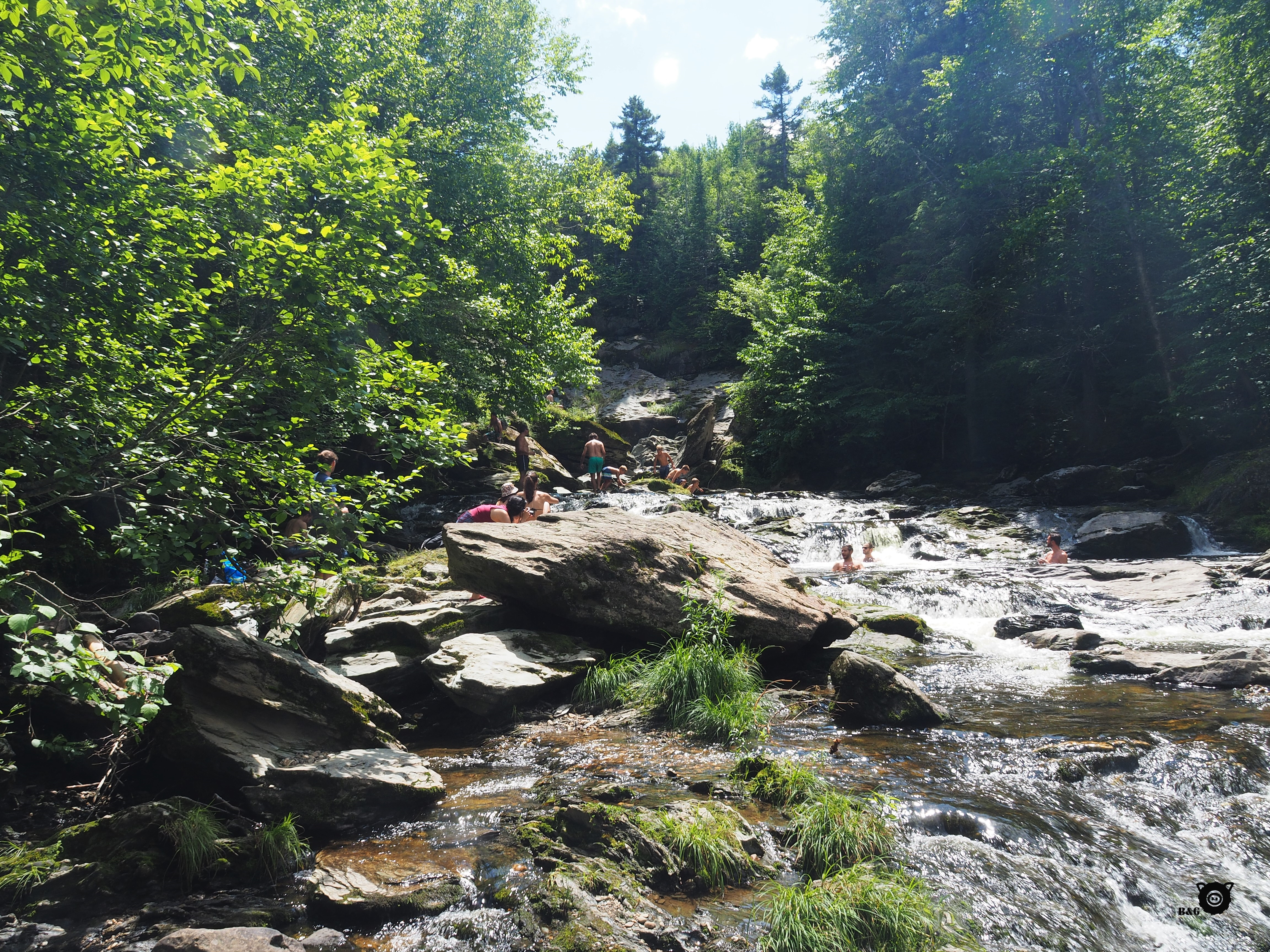 Dîner parmi les rochers dans les sentiers des cascades (Ham-Nord, Qc). Un site enchanteur où on peut se trouver de beaux endroits pour s’installer au beau milieu de la rivière.