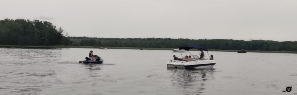 Ce matin, tout le monde lève le camp tranquillement. Sauf nous! Nous sommes rendus des vrais pros, alors on est prêts les premiers. Il faut dire que les garçons et moi, on se lève de bonne heure! L’avenir appartient à ceux qui se lèvent tôt dit le dicton. Et bien, Maman et Papa ont généralement tendance à trouver que l’avenir nous appartient pas mal!!! Alors en attendant le reste de la troupe on en profite pour visiter quoi? Un parc bien sûr! Ce petit détour improvisé nous permet de croiser des amis pas vus depuis bien longtemps. Et ensuite, une autre expérience de cochon aventurier m’attendait… Figurez-vous que je suis maintenant un cochon marin. Oui, oui, marin! Mes humains un peu fous m’ont amené en bateau!!! Avec les amis, nous sommes allés faire un tour sur la Rivière des Outaouais, dans une belle parade de seadoo, de ponton et de bateau. Maman et Elliot se sont même jetés à l’eau dans cette belle grande rivière pour se rafraîchir un peu et barboter. Petite collation (pas de trèfle à bord malheureusement), et encore quelques beaux moments partagés avant que chacun retourne à ses occupations dans la promesse de se revoir bientôt. On arrive à la maison juste à temps pour mon dodo, la tête remplie de beaux souvenirs et d’expériences enrichissantes. Escapade test #2 approuvée par Gustave!