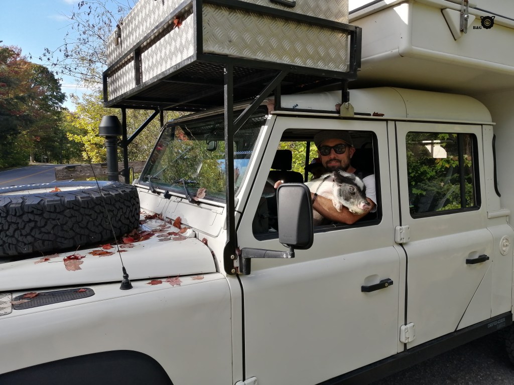 Groin groin (bonjour en langage cochon)! Tout a commencé par un petit vendredi tranquille aujourd’hui. Mes humains ont vaqué à leurs occupations respectives : travail, école, garderie; pendant que je vaquais aux miennes : manger, m’abriller, dormir. Une petite journée bien ordinaire quoi! Jusqu’à ce que Papa revienne du travail. Alors là, c’était terminé la tranquilité! Une vraie tornade je vous dis! Un brin d’épicerie par-ci, des piles de vêtements par-là, il s’est mis à tout déplacer vers le campeur pendant que Maman finissait sa journée de travail de bonne heure. Je me suis tout de suite douté que mon vendredi tout douillet tirait à sa fin… Et bien j’avais raison! Quand Elliot est arrivé de l’école, ma famille m’a embarqué avec Babar et ça y était pour le début d’une nouvelle épopée!