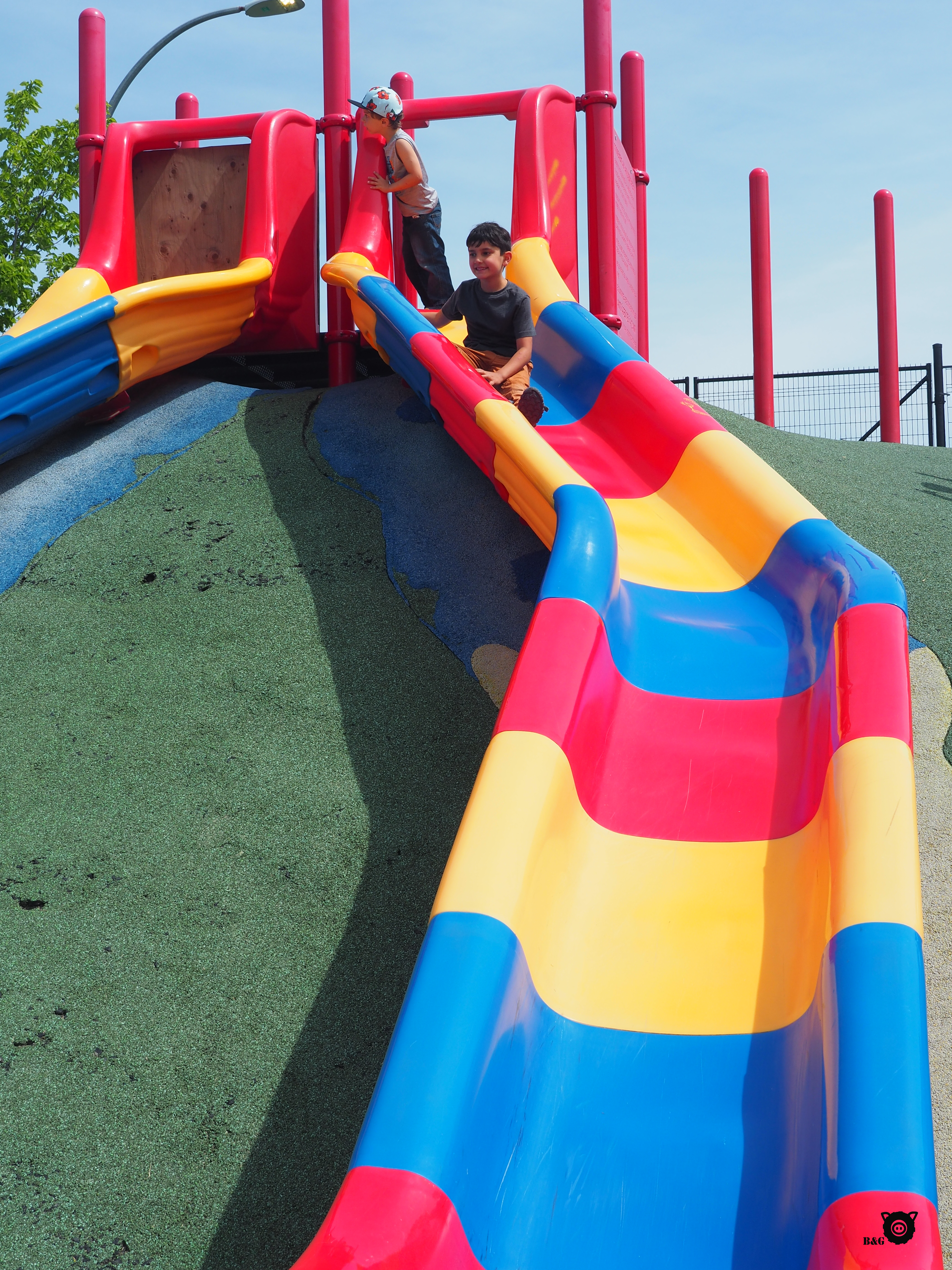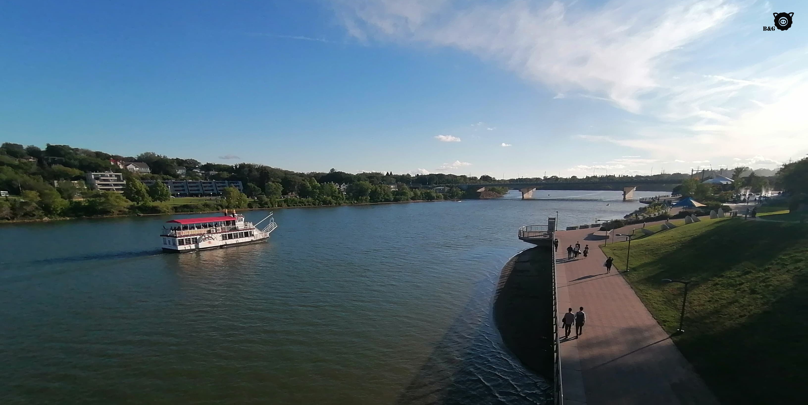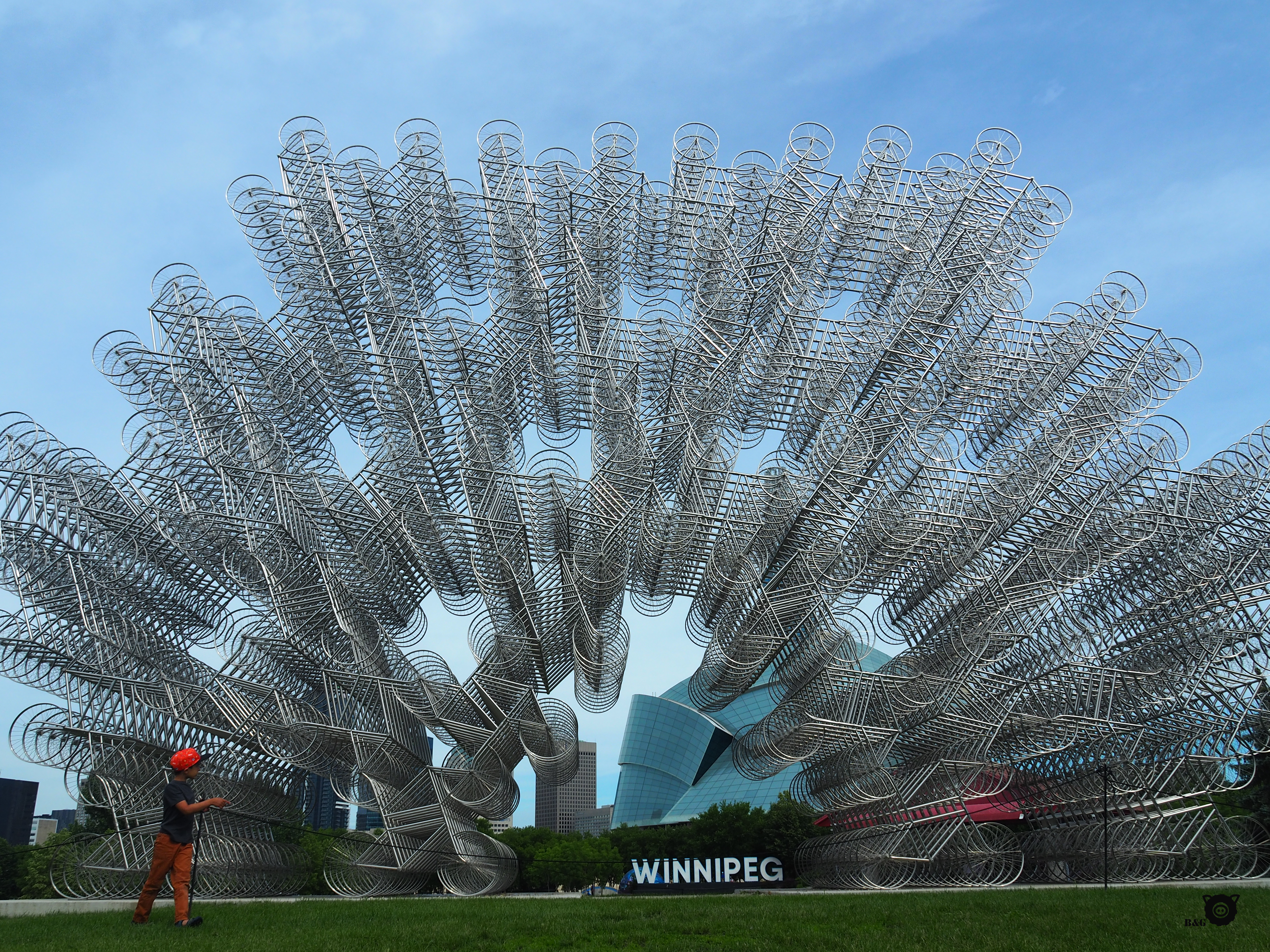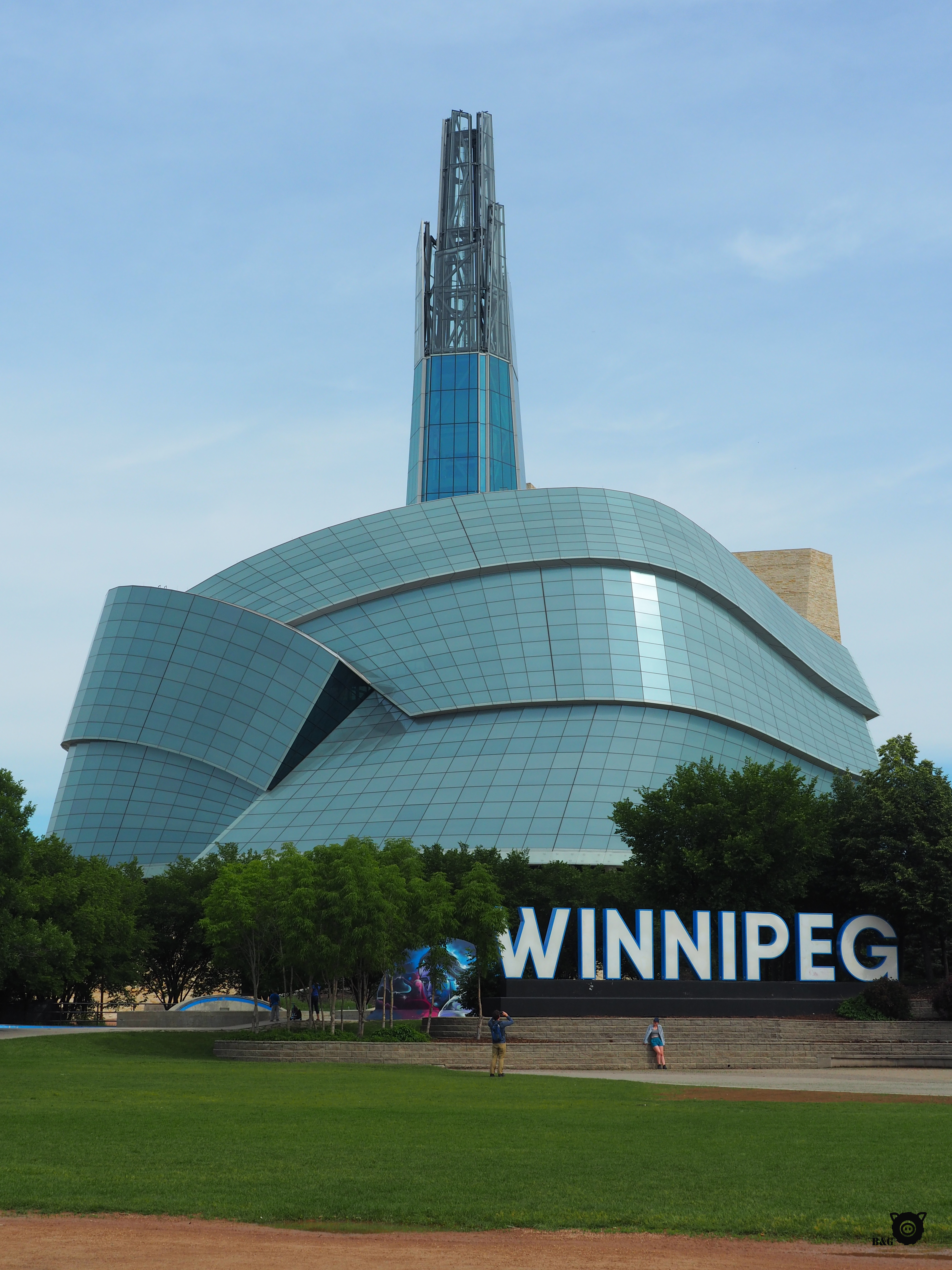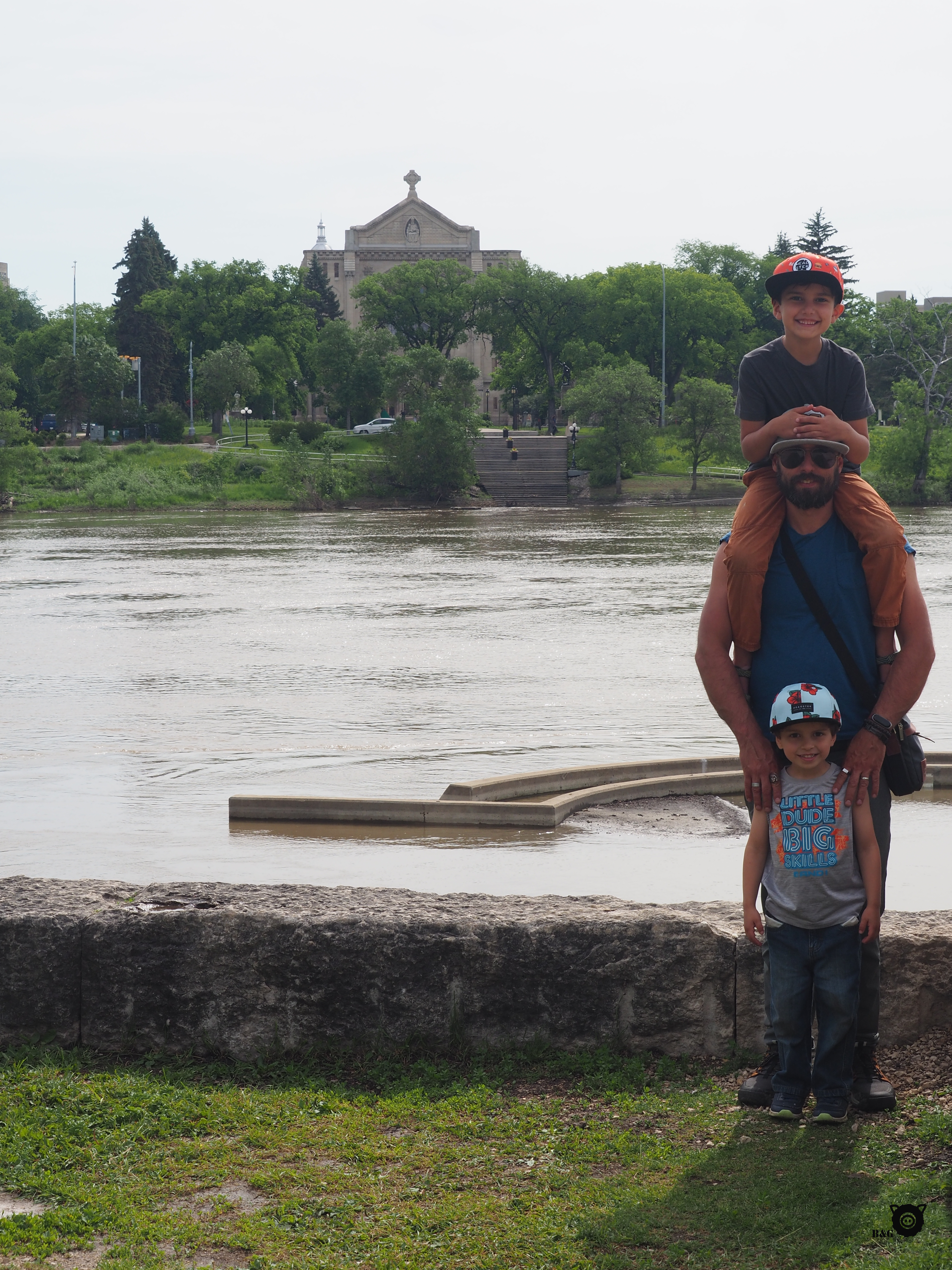 Bon, maintenant, revenons à nos cochons (désolé les moutons!). Nous avons pris le petit déjeuner à The Forks, lors de notre arrivée matinale à Winnipeg. J’ai marché un peu pendant que les garçons profitaient du parc et que les parents préparaient à manger. Ensuite, petite sieste pour moi après ma courte nuit pendant que mes humains prennent le temps de faire le tour de ce très beau parc à la croisée des rivières Rouge et Assiniboine. Nous faisons ensuite un petit détour par le quartier francophone de Saint-Boniface de l’autre côté de la rive, pour croiser la maison de Gabrielle Roy avant de passer à travers cette belle ville. Avant de poursuivre le trajet, nous arrêtons au Parc Assiniboine, qui semble être le lieu de rassemblement par excellence de la ville. Et avec raison! Étang aux canards, beau parc pour enfants, sentiers, zoo, tout y est. Et c’est immense! Un très bel endroit.