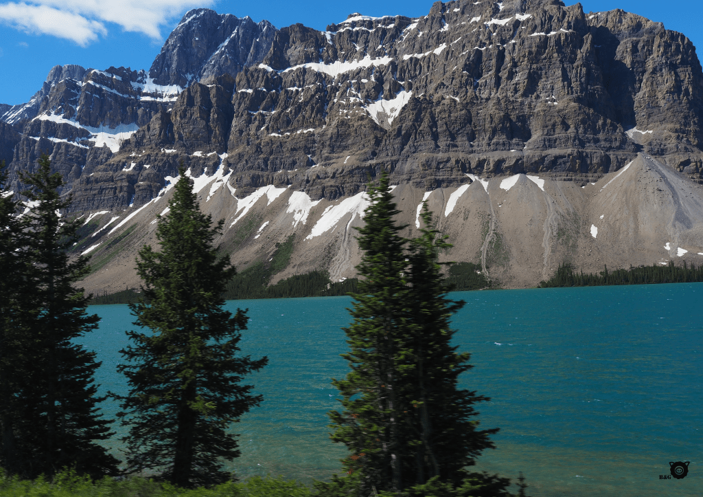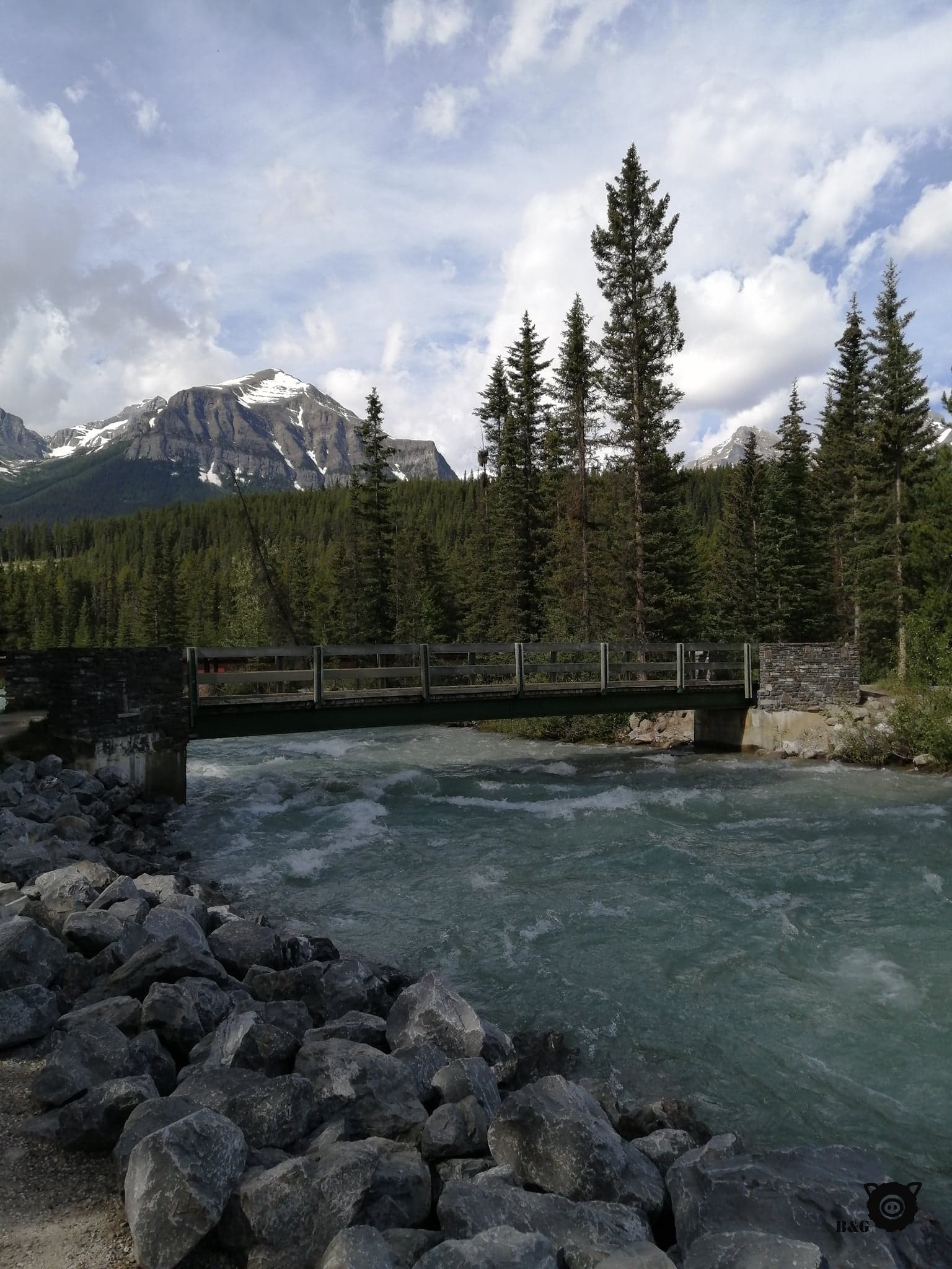 On poursuit notre route sur la Promenade des glaciers en espérant pouvoir aller zyeuter le Lac Louise, mais impossible de s’y arrêter. Le stationnement est plein et de nombreux signaleurs sont là pour faire circuler les voitures. Idem pour le Lac Moraine, alors on passe notre chemin en espérant pouvoir tenter notre chance à un autre moment. Remarquez que des lacs turquoises, on en a vu des beaux dans les derniers kilomètres, alors nous ne sommes pas en reste.