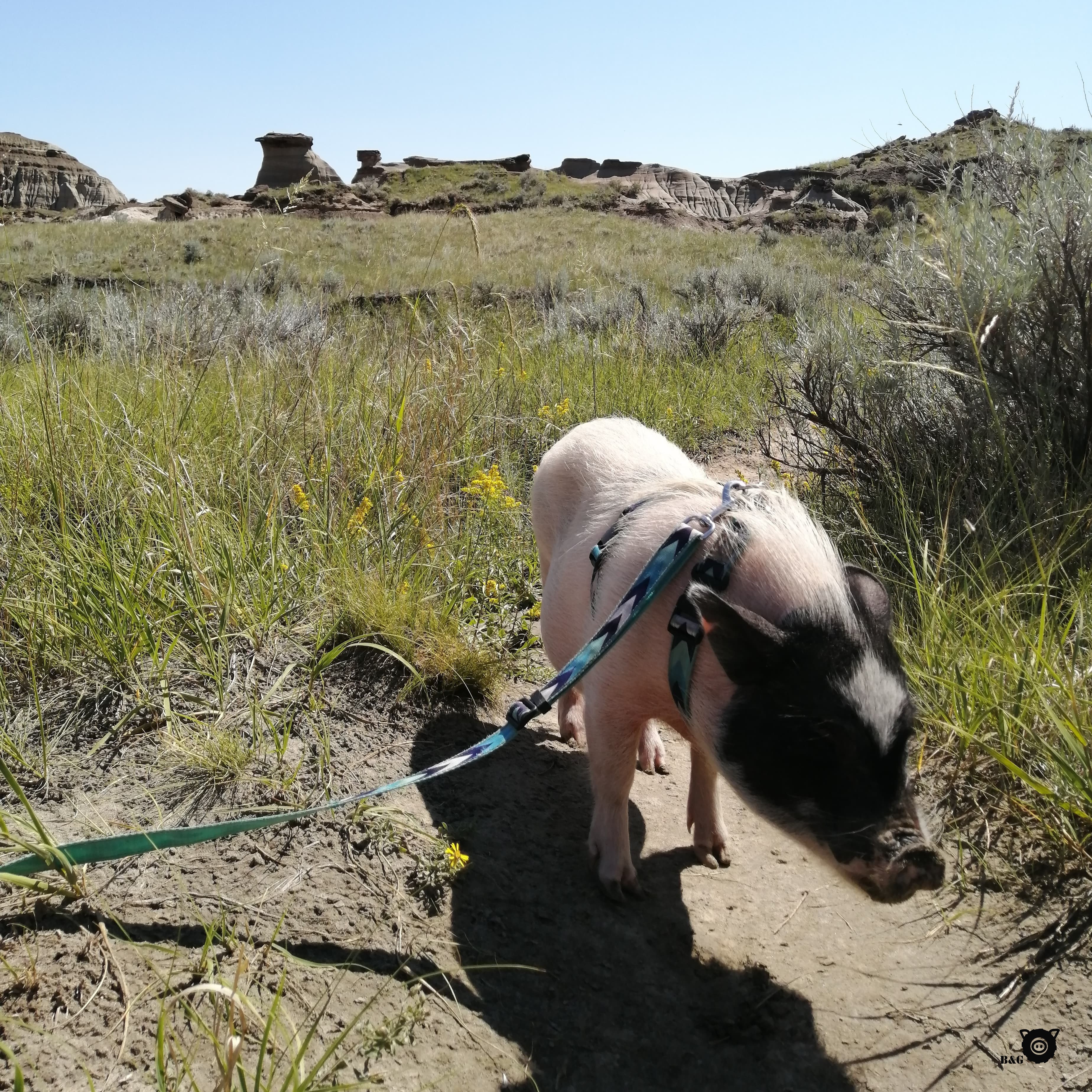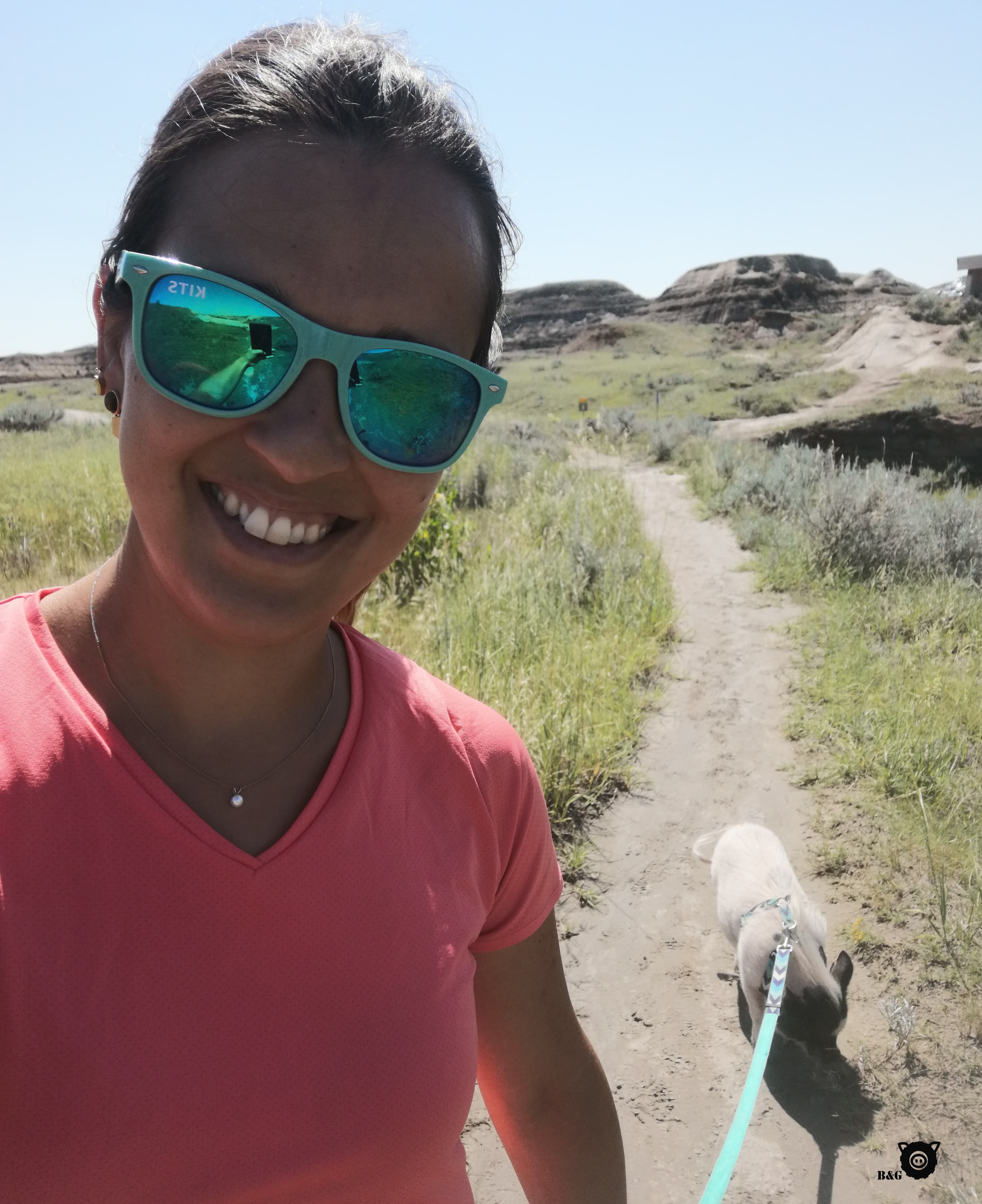 Nous sommes donc aux premières loges le lendemain matin pour aller justement randonner auprès de ces cheminées de fées. Il y a beaucoup d’escaliers, alors j’attends sagement dans le camion pendant que mes humains escaladent la montagne et admirent la splendeur des Badlands.