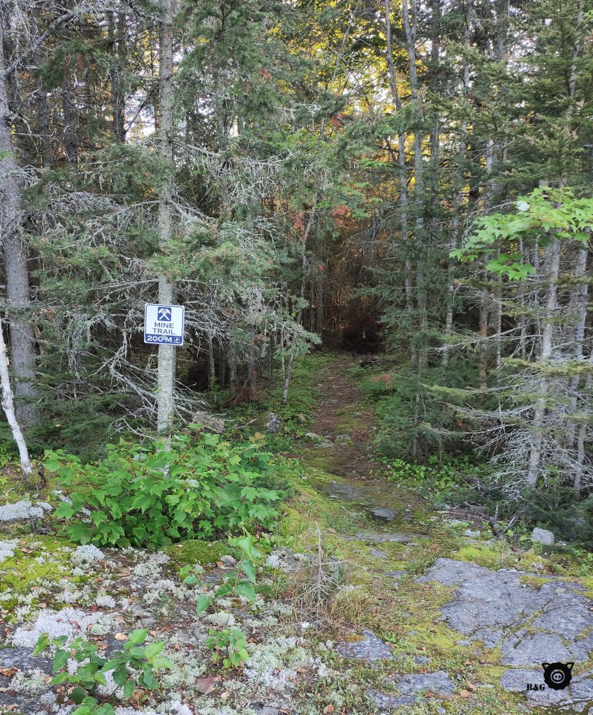 Le lendemain matin : route-route-route! On est pas mal dans un « no man’s land » pour une bonne partie de la journée, alors après un petit salut à Winnie l’Ourson pour remplir nos réservoirs d’eau, on en profite pour s’avancer le plus possible. On dort dans un endroit un peu incongru, à Bruce Mines passé Sault-Ste-Marie, qui est en fait le stationnement de départ de sentiers entourant une ancienne mine de quartz datant du milieu des années 1800. On se dégourdit les jambes en empruntant ces petits chemins qui apparaissent peu fréquentés, mais qui pour ce soir, nous font office de randonnée.
