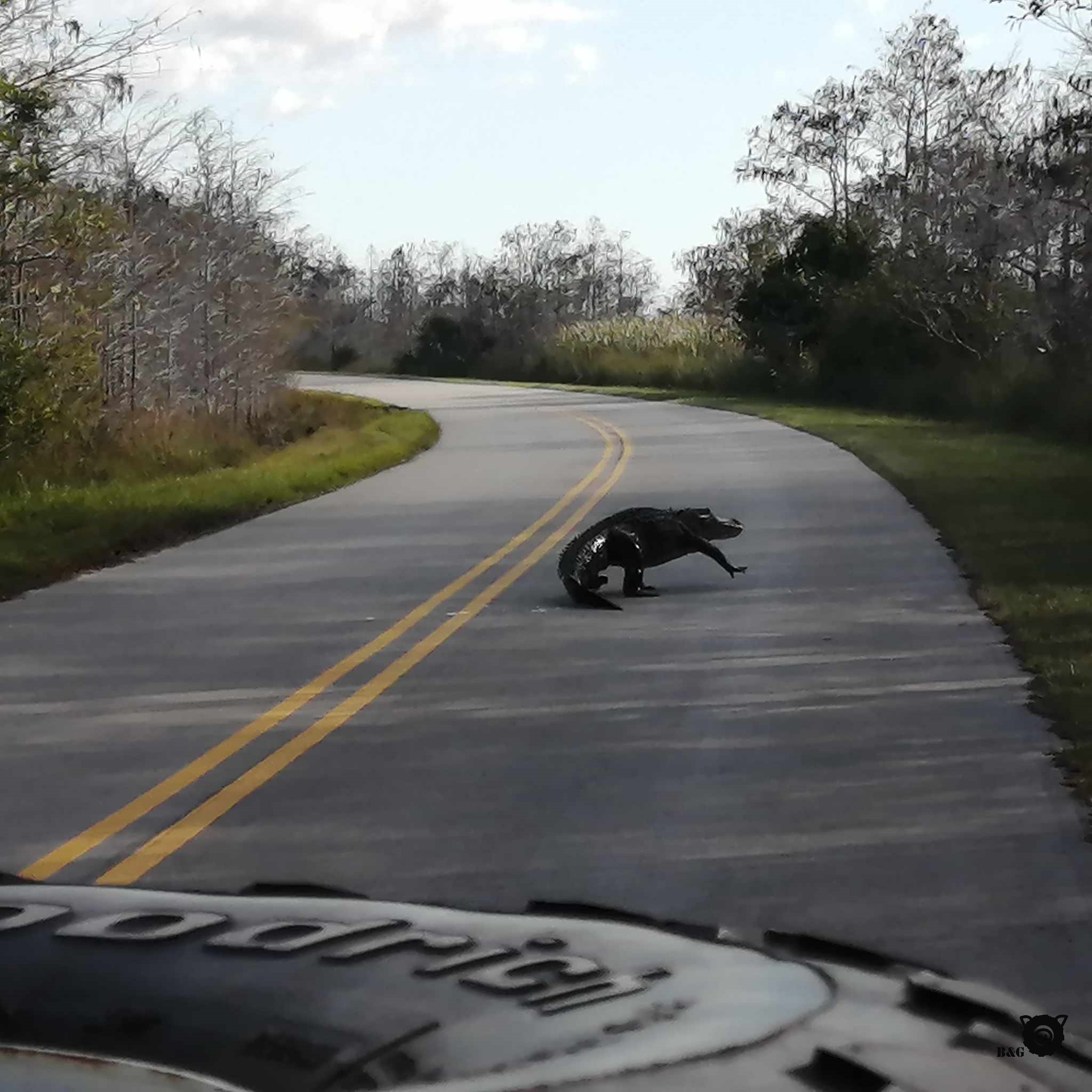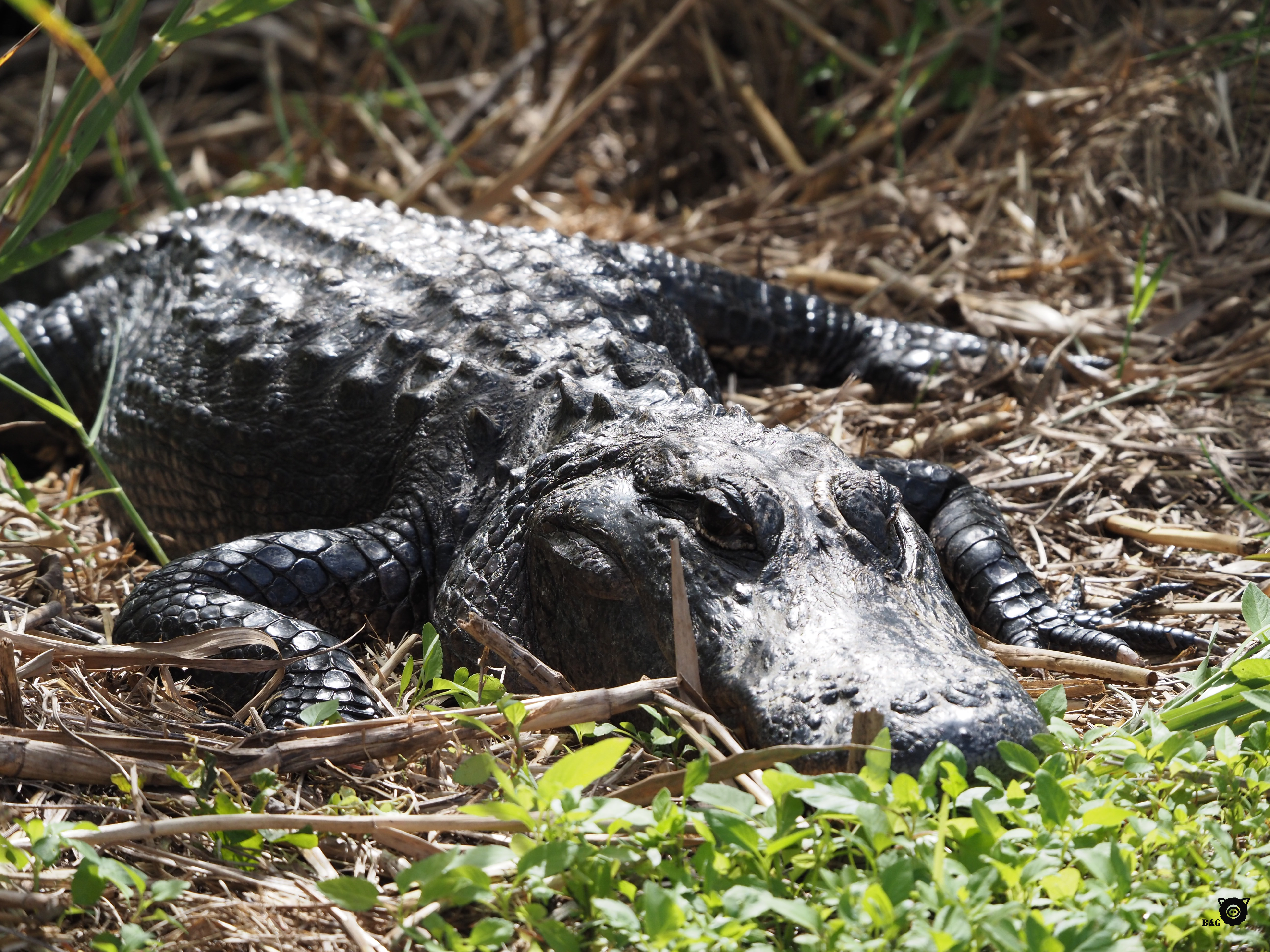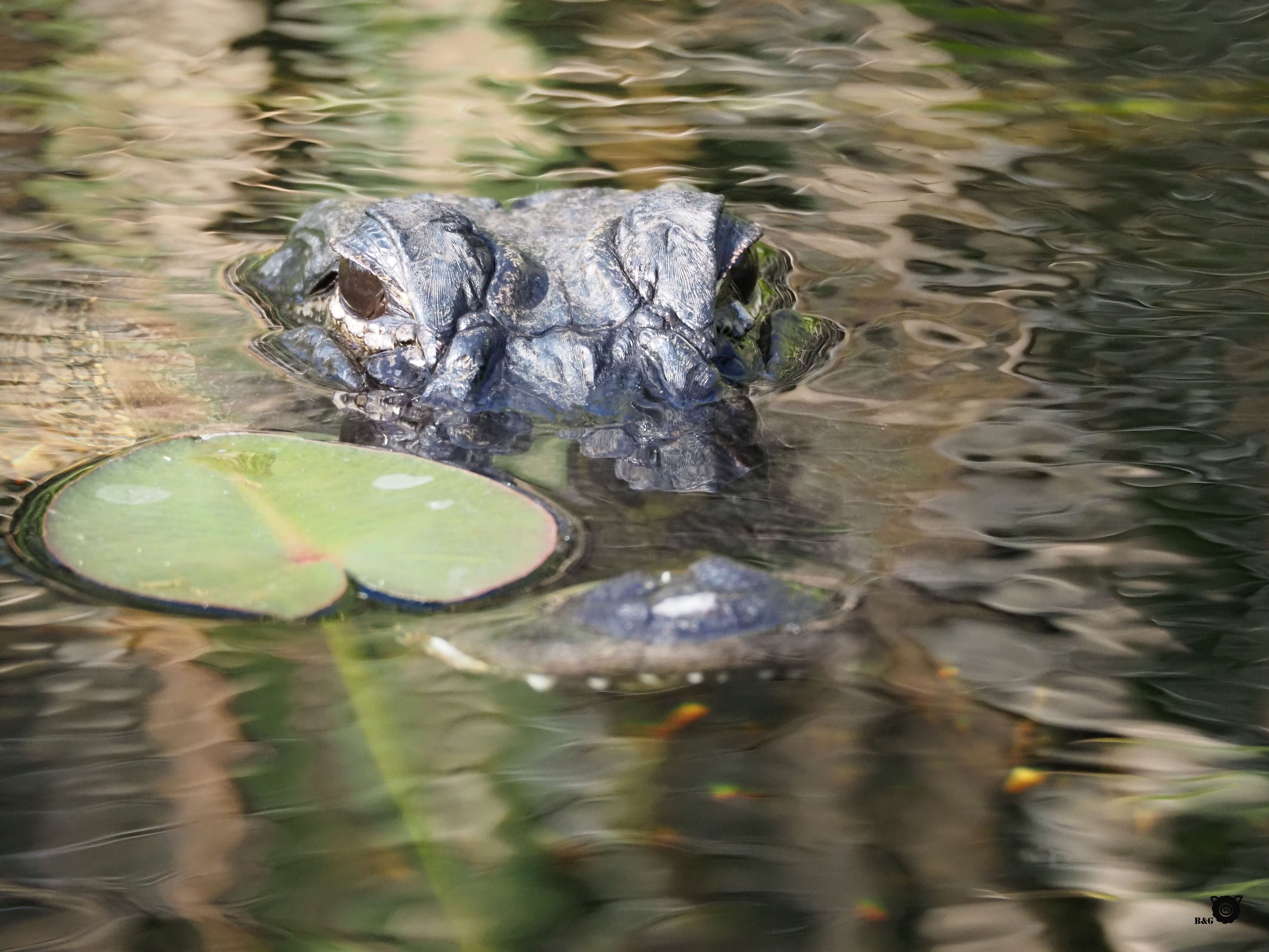 Petit défi pour mes lecteurs: saurez-vous différencier l’alligator du crocodile? Les deux vivent dans le parc. L’alligator est noir, a un nez en U et habite en eau douce. Le crocodile est verdâtre, a le nez pointu et préfère l’eau salée.