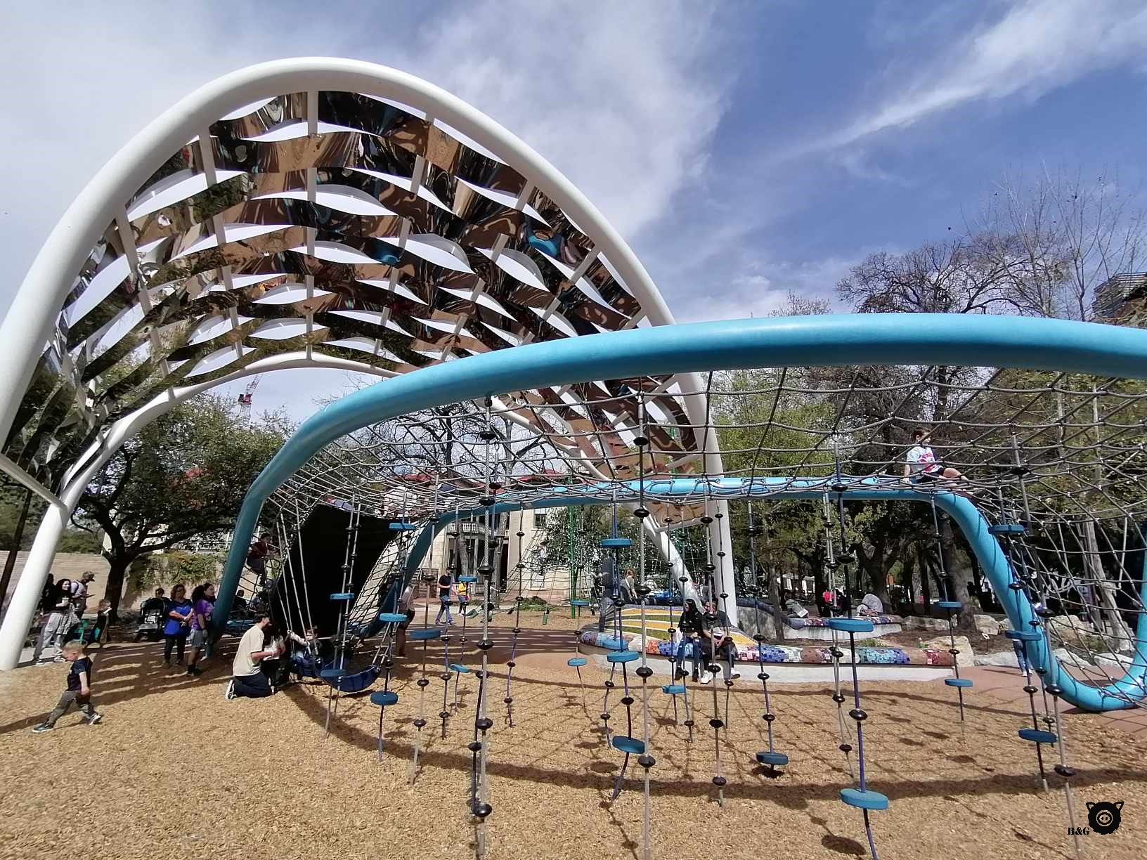Le parc Hemisfair au centre de la ville où petits et grands viennent se réunir pour jouer aux échecs géants, creuser dans le carré de sable ou grimper dans les structures pour les enfants. On y sent clairement les influences espagnoles car il a un petit air de Parc Guell…