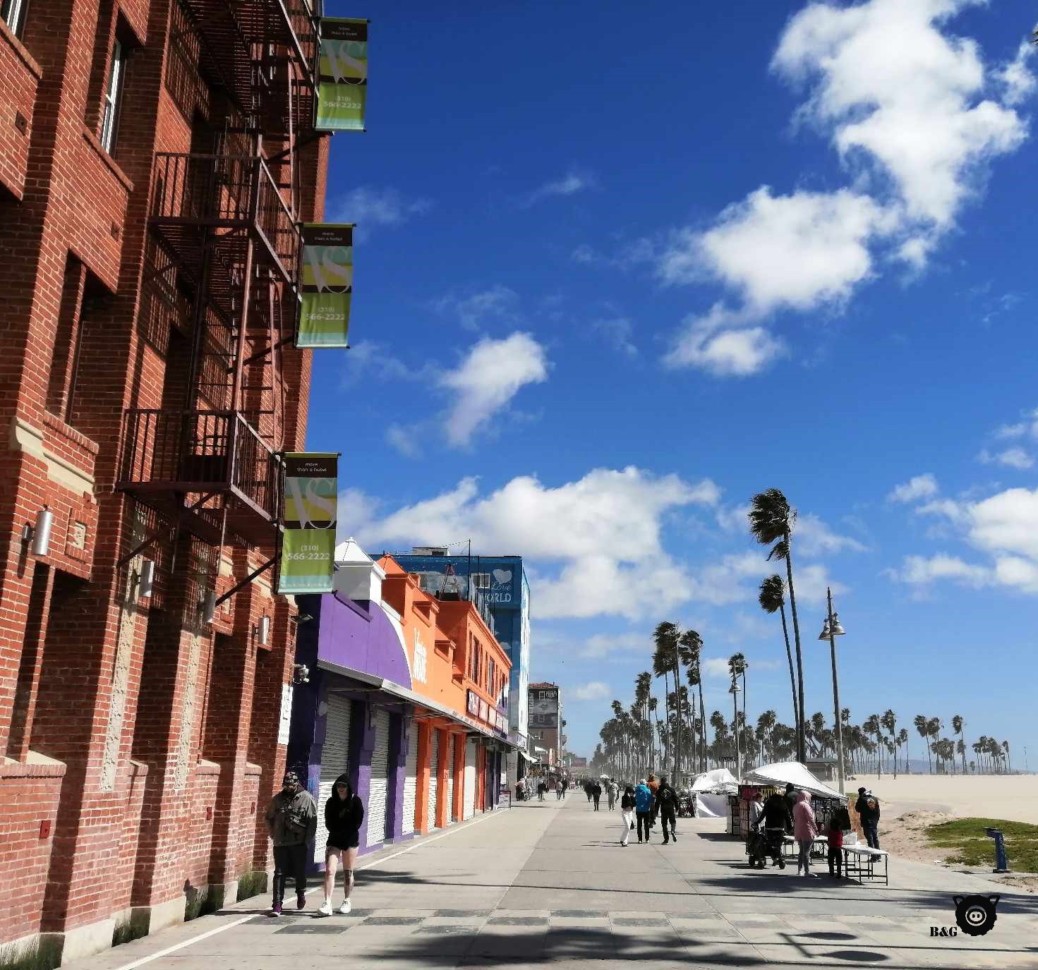Los Angeles, nous voici!! On commence notre découverte de la ville en se promenant dans Little Tokyo (petit mais mignon) et dans le Chinatown (plus grand et typique) où on déguste un bon dîner dans un petit resto familial chinois. Ensuite, on se dirige vers Venice Beach, qui est magnifique au soleil! Mais tellement venteuse qu’on doit se munir de foulards pour essayer d’avaler un peu moins du sable qui revole tout autour de nous. Qu’à cela ne tienne, on fait tout de même le boardwalk avec quelques autres touristes courageux et on étend notre promenade jusqu’aux petits canaux de Venise au bout. C’est malgré tout une très jolie marche même si nos souliers finissent remplis de sable sans même avoir eu besoin de jouer sur la plage.