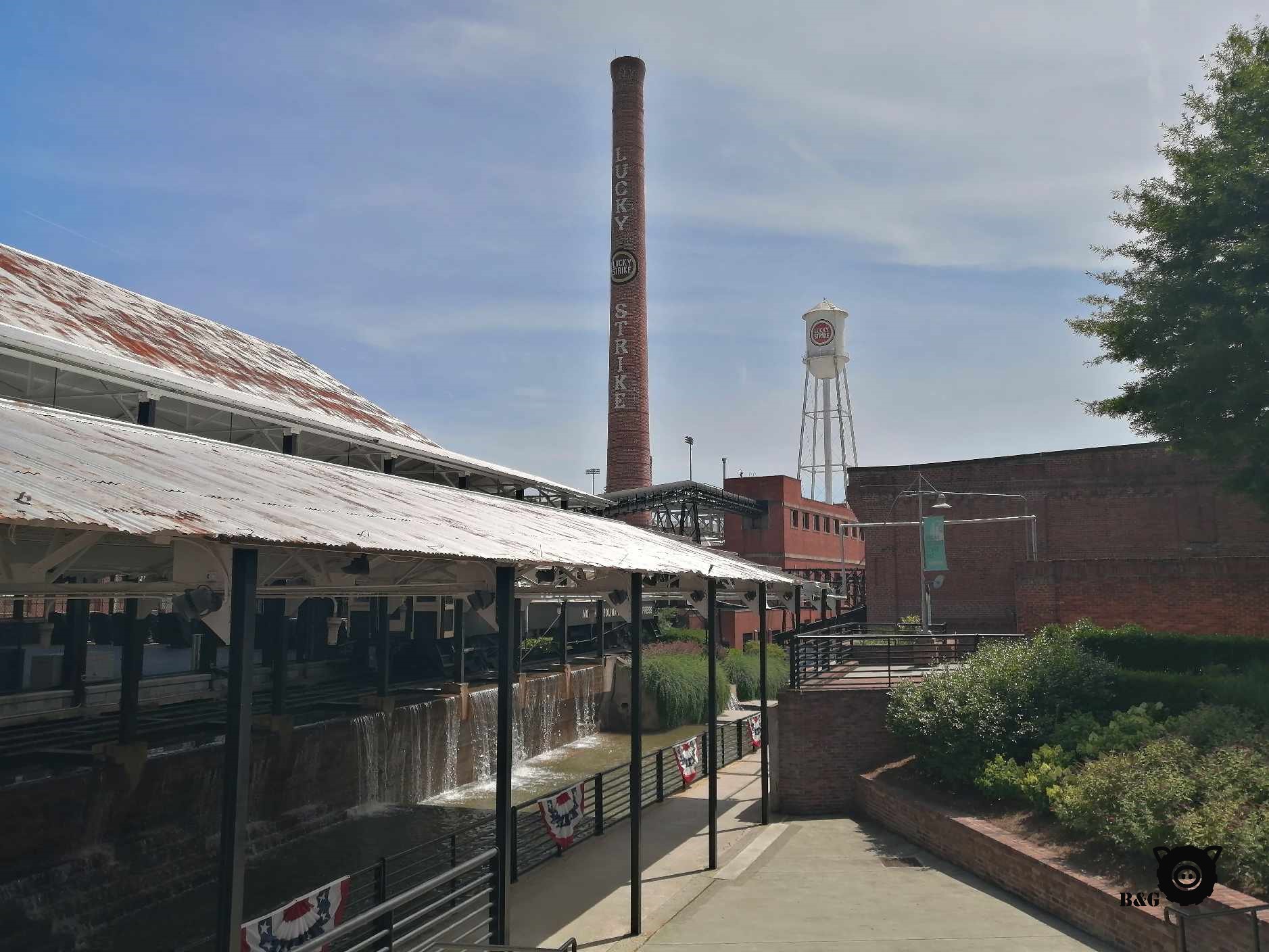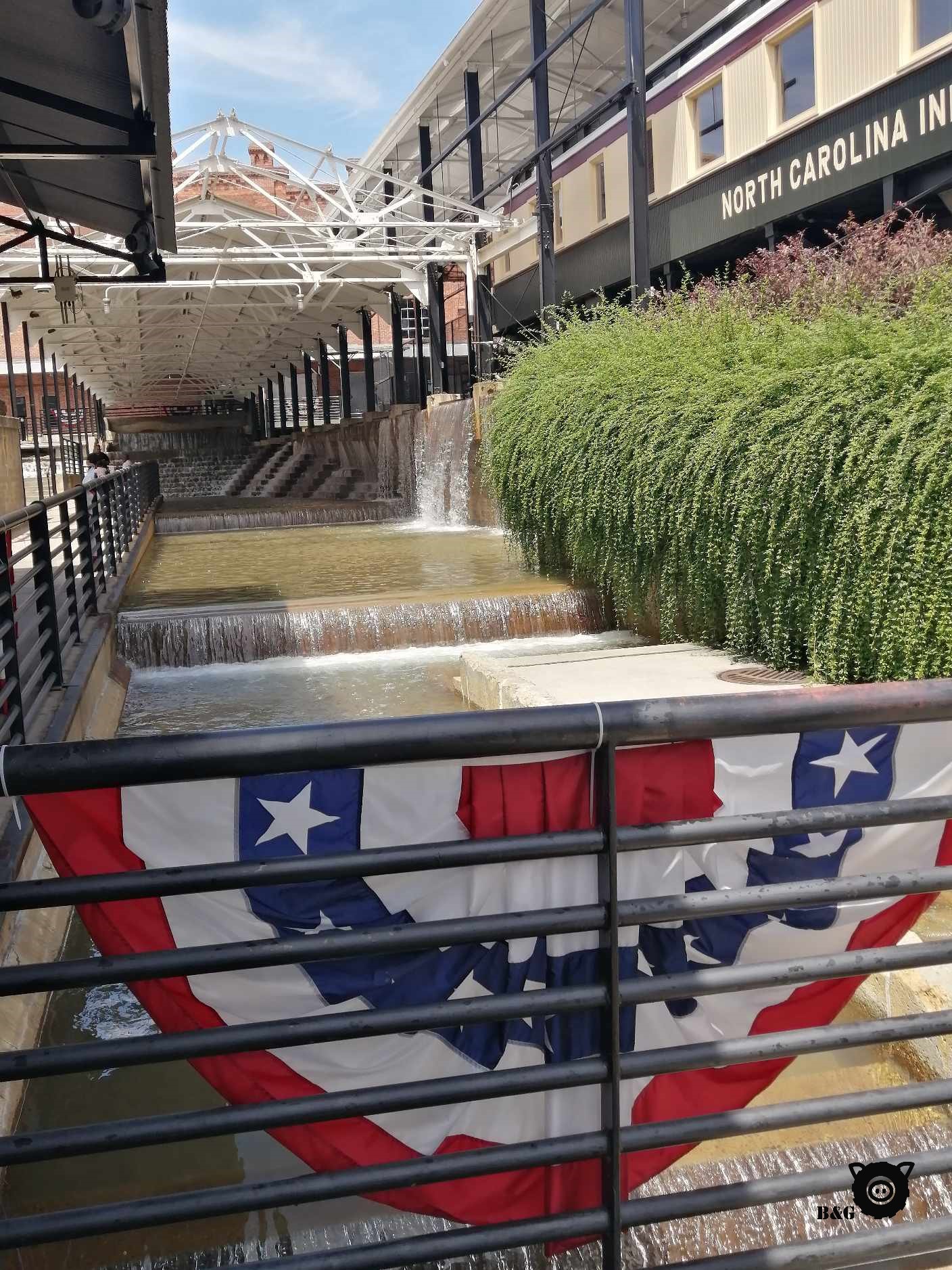 Juste avant Raleigh, à Durham, une petite promenade sympathique dans le American Tobacco Historic District. C’est une vieille usine de la compagnie de tabac qui a été revalorisée avec des petits restos et d’impressionnantes fontaines. Une jolie promenade!