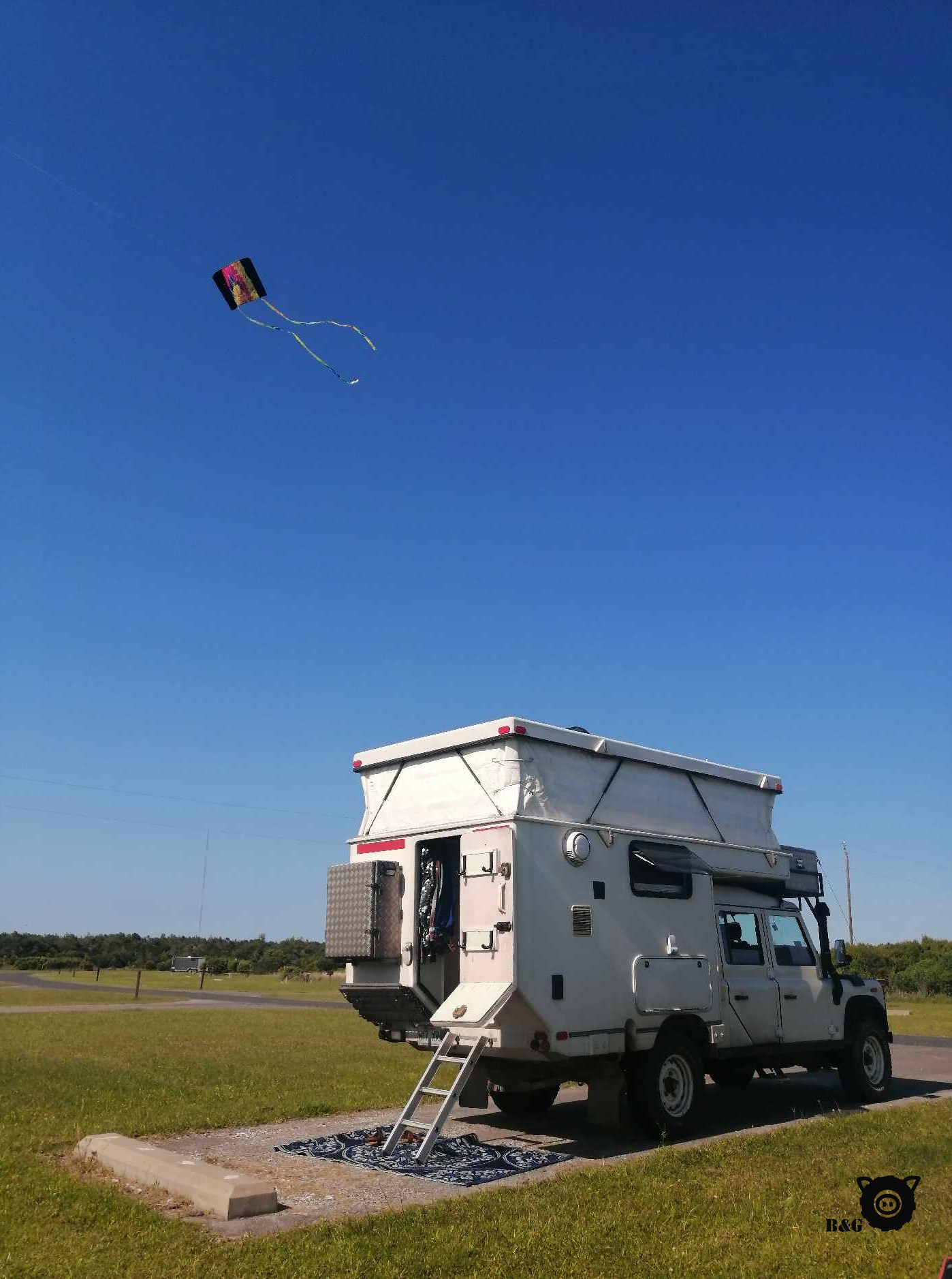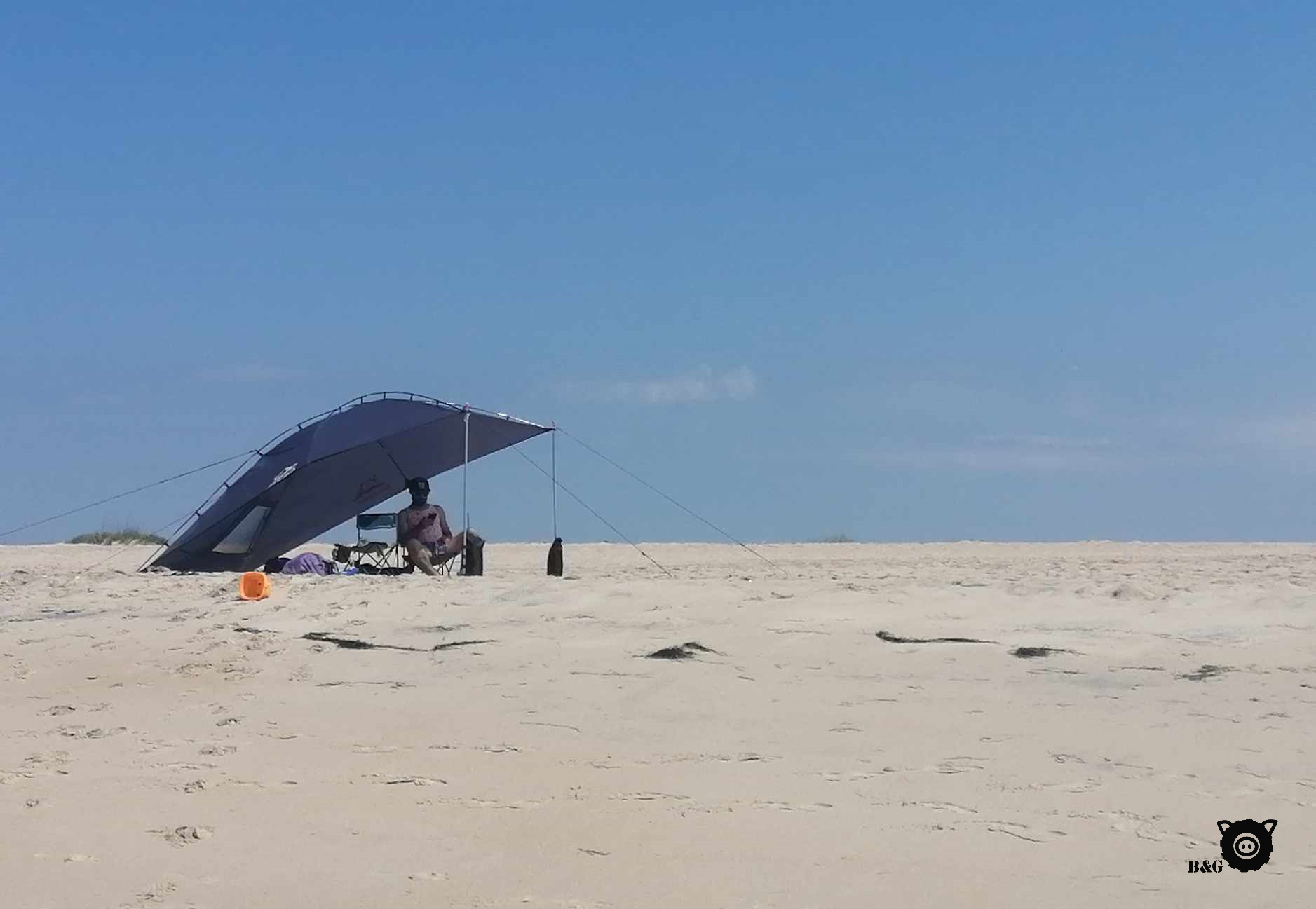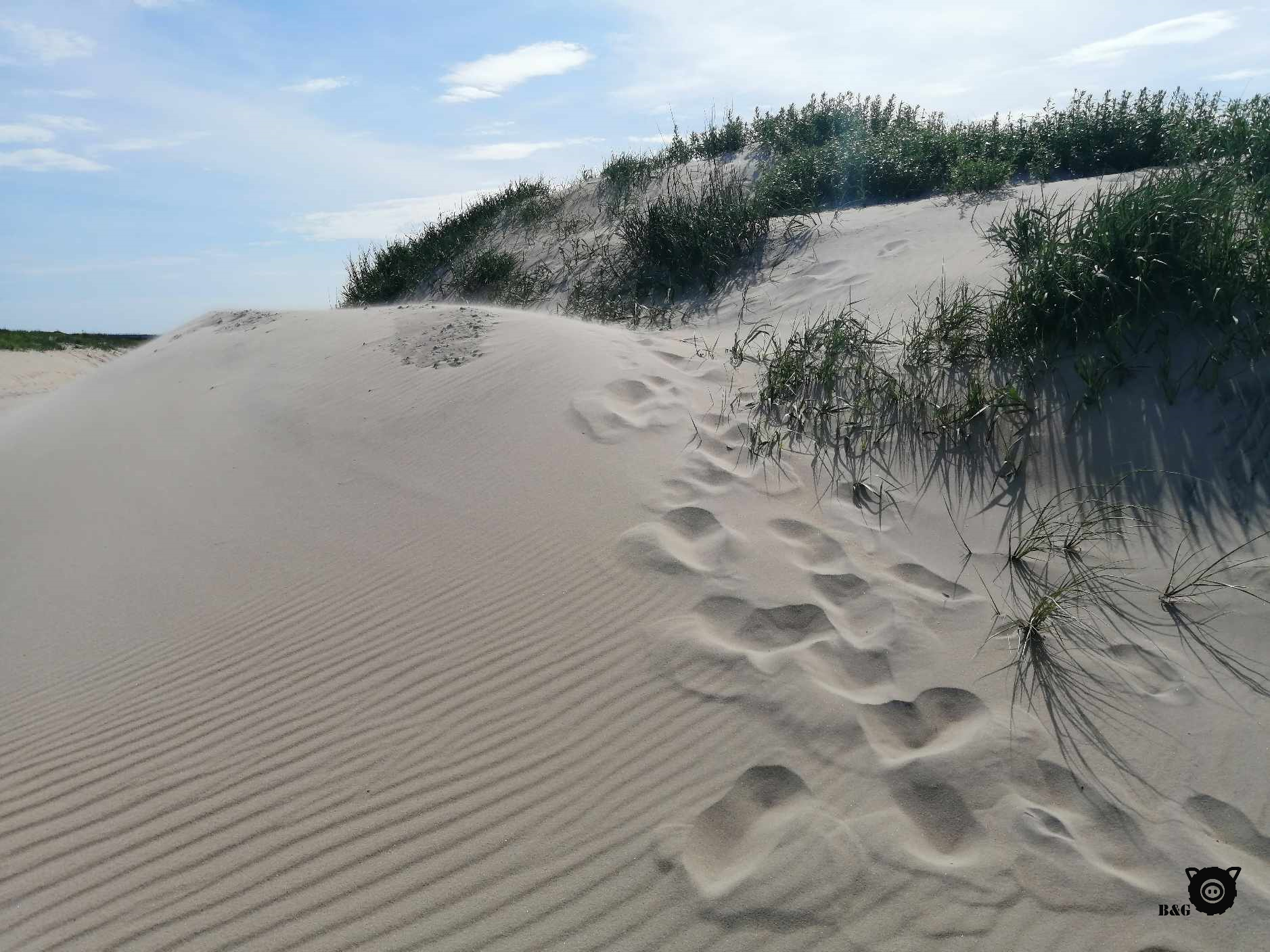 Et, après encore quelques temps… la voilà!!!! Et pas dans n’importe quel décor: la mer nous attend sous le soleil brillant du Cape Hatteras National Seashore dont les dunes et la plage s’étendent sur des kilomètres au milieu de l’eau. C’est magnifique! Et le camping est quasi vide, ce qui ne manque pas de nous plaire. Nous nous installons ici tous les cinq pour faire une petite pause temporelle dans notre bulle de vacances avant de débuter notre ascension vers le nord. Mes humains savourent la baignade dans les vagues (surtout les garçons) et le calme de la plage (surtout les parents). On s’arrête, on se dépose et on prend le temps de déguster ces doux moments ensemble dans l’époustouflant décor du cap.