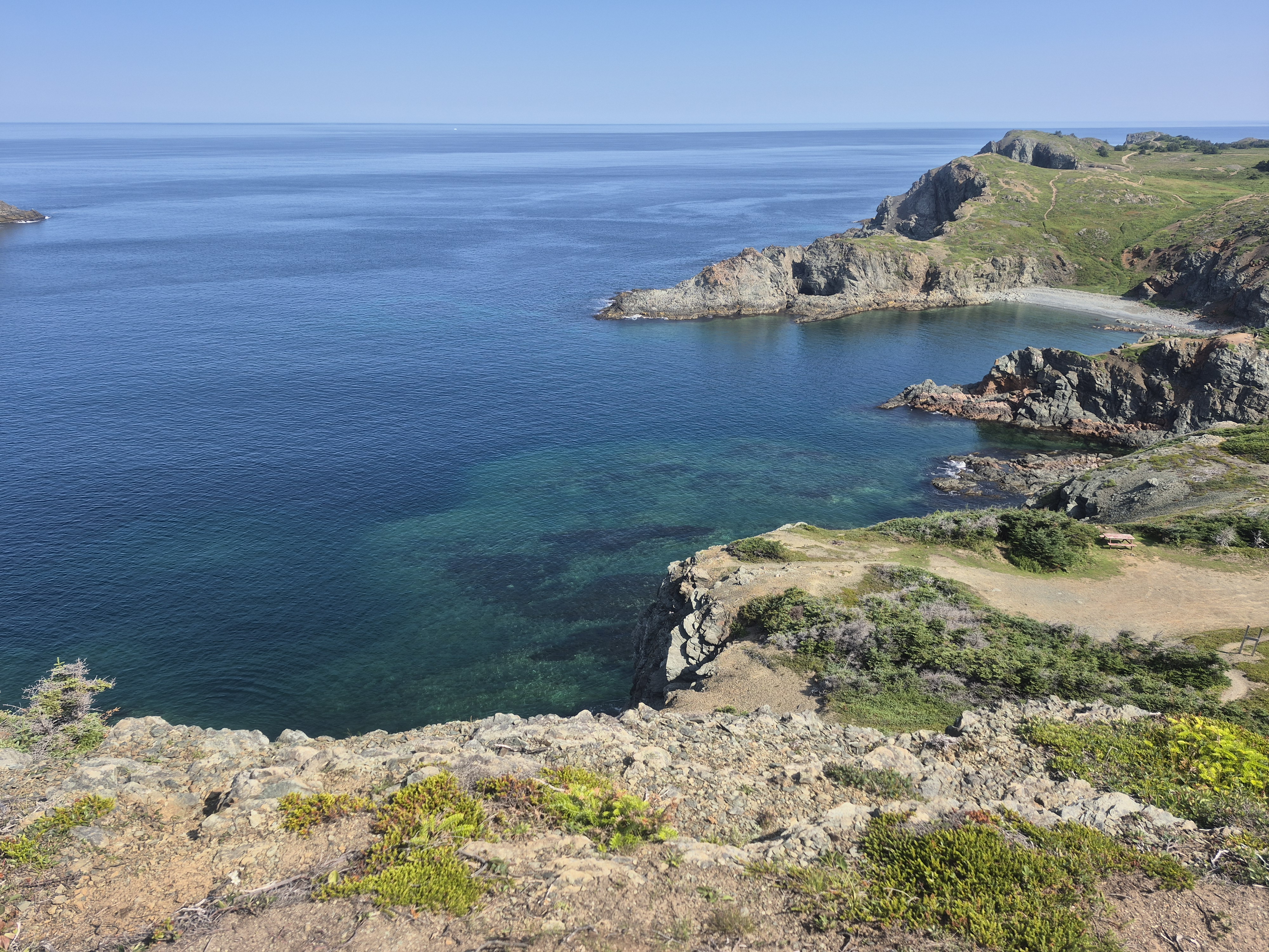 À notre réveil le lendemain matin, le soleil est déjà haut et fait briller au loin devinez quoi… un iceberg! Mes humains vont l’observer d’un peu plus haut après que j’aie moi aussi fait une petite promenade matinale. Il n’y a pas à dire, la vue est époustouflante! C’est la beauté du boondocking qui nous fait découvrir des endroits magiques hors des sentiers battus. Après une petite virée au point de vue près du phare juste un peu plus haut, mes humains s’amusent à faire les boutiques du village et ensuite à aller déguster des vins inusités au vignoble de la région. Je dis « inusités », car ce sont tous des vins à base de fruits de la région (donc sans raisin!): chicoutai, rhubarbe, framboises, bleuets, pissenlits, etc. C’est étonnant, mais étonnamment bon! Et par la même occasion, ils en profitent pour déguster un autre met typique du coin: les toutons! Ça ressemble un peu à des beignes frits, et la recette traditionnelle est de les tremper dans la mélasse et la crème fouettée. Miam!
